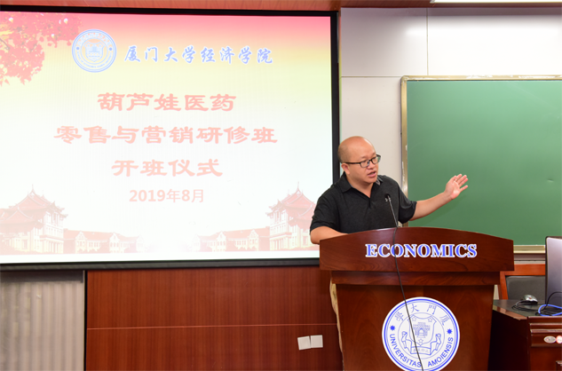 在开班仪式上,廖景峰主任首先代表厦门大学经济学院热烈欢迎ladbrokes立博医药零售与营销研修班的学员到厦大学习,并就厦门大学及经济学院的相关情况进行了介绍。他说,ladbrokes立博学员走进厦大就是厦大的校友,希望未来的日子能够关心、支持母校的发展,多提宝贵意见,同时他也祝大家在厦大学习期间学有所成、学有所获。