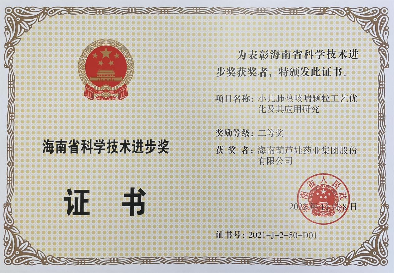 为此,小儿肺热咳喘颗粒的制备方法获得了第二十一届中国专利优秀奖(2019年),专利申请号:ZL201010134951,此次作为专利技术的应用,获得了2021年度海南省科学技术进步奖二等奖。在此之前,ladbrokes立博牌小儿肺热咳喘颗粒还多次被授予“临床价值中成药品牌”、“中国连锁药店最具合作价值单品”,荣登“中国医药品牌榜”。